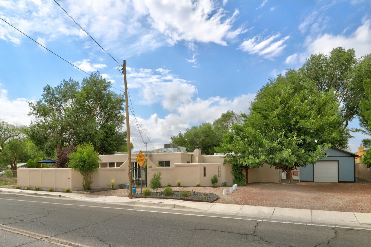 This beautiful, walkable and bikeable home sits on a private, secure .60 acre lot just a short distance from Old Town,Saw Mill, downtown & the Bosque. This home blends timeless character & charm with modern amenities. Natural light fills the home creating a cheery, welcoming space. Sellers made over $250,000 in improvements in 2022 including completely remodeled kitchen & baths, new flooring, new centrally ducted HVAC system, addition of a garage, California Closets and the list goes on. A complete list of improvements is available under documents. The detached 652 sqft studio is perfect for a private art studio or working space and/or gym but could be transformed into an additional dwelling unit. The irrigation well allows for endless possibilities regarding landscaping or urban farming.