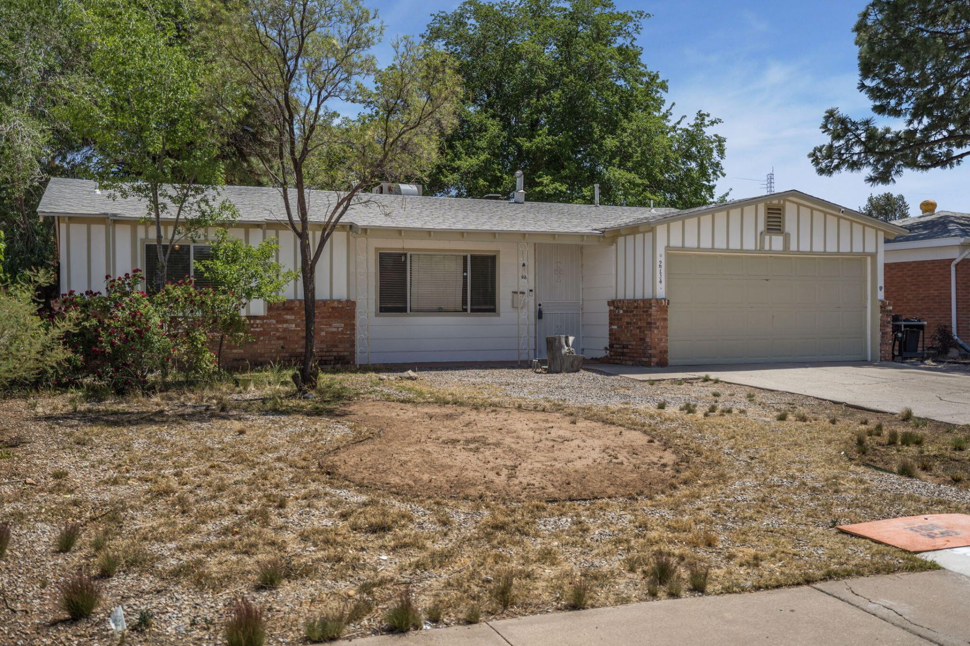 Uptown gem on a large .22-acre lot ready for a new owner! Prime NE location close to shopping, ABQ Uptown, parks, and schools. 1,721sf with 3 bedrooms, 2 bathrooms, dual living areas, and a 2-car garage. Spacious front living area with great natural light. Generous kitchen with abundant cabinet and counter space, perfectly situated next to the dining area. Inviting main living room centered around a warm gas fireplace. Comfortable owner's suite with a private bath and walk-in closet. Large backyard with mature trees. Low monthly solar payments!