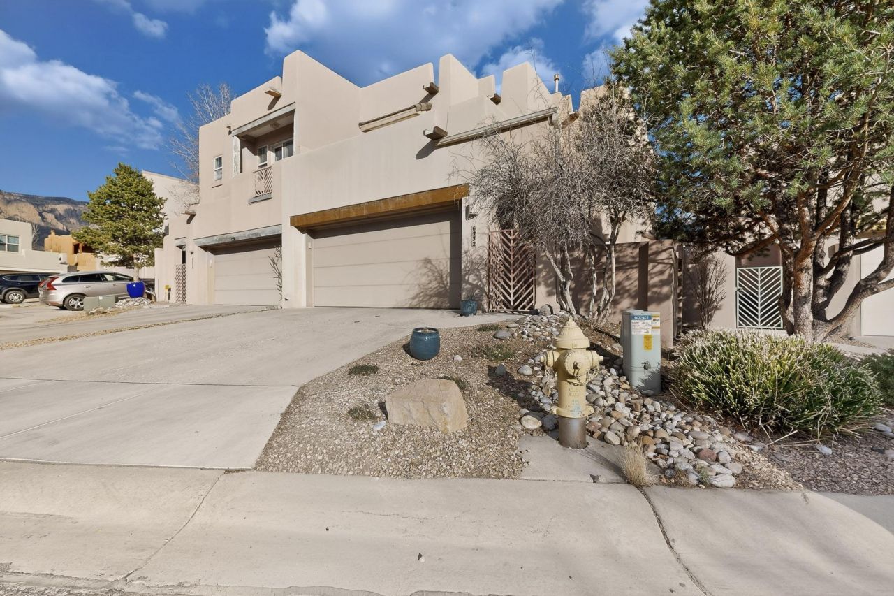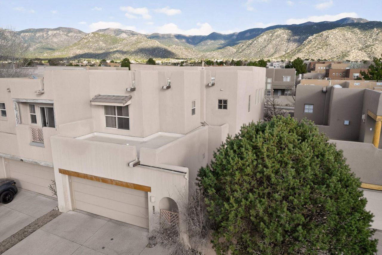 Welcome to this stunning townhome in the highly sought-after High Desert community! Nestled against the Sandias, this home finds itself walking distance from scenic hiking trails. The main floor features hardwood & tile and fantastic mountain views right from the living room. Upstairs offers 2 bedrooms with full en-suite baths. The primary suite includes a private balcony offering breathtaking panoramic mountain views. Enjoy refrigerated A/C, ample storage, and a private, low-maintenance backyard oasis, perfect for social gatherings or peaceful evenings under the starry night sky. Home includes a new TPO roof and a water softening/RO system installed just two years ago, as well as a Bosch dishwasher. Close to top-rated schools. This High Desert gem won't last long!