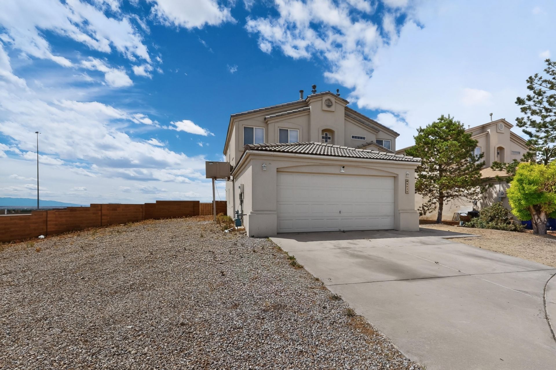 Welcome to 8020 Eliyah Court NW, an exquisitely appointed two-story residence positioned on a premium oversized corner lot in Albuquerque's sought-after northwest corridor. This 3-bedroom, 3-bath home showcases elevated design with a large loft, modern sophistication, and exceptional functionality. Step inside to discover a light-filled, open-concept interior featuring sleek, no-carpet flooring for a clean, contemporary aesthetic. Dual fireplaces serve as stunning architectural focal points, creating inviting spaces ideal for both refined entertaining and everyday luxury living. The thoughtfully designed layout offers seamless flow between living, dining, and kitchen areas, complemented by stylish, modern finishes throughout . The expansive home provides backyard access and RV parking.